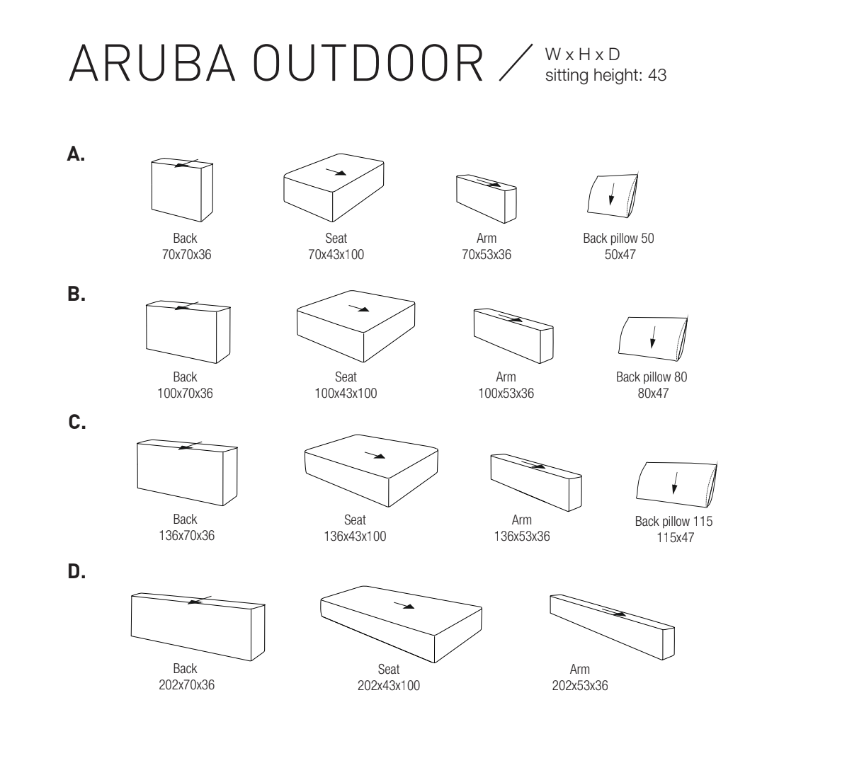 Mocht u interesse hebben in andere afmetingen of zitelementen binnen deze collectie. Gelieve ons te contacteren via de onderstaande knop.